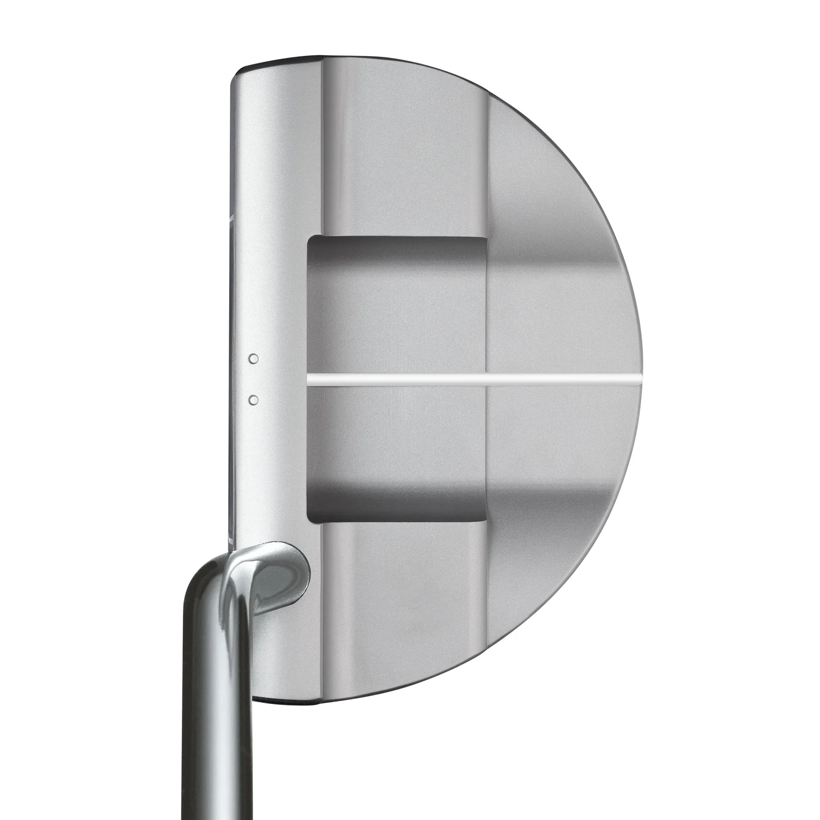 Un mazo sofisticado para jugadores que cuenta con una cavidad trasera profunda de tres secciones y la línea de visión más larga entre todas las formas de cabeza Neo Classic. Con una línea superior delgada que mejora su apariencia en la posición de tiro, el ER8 es apreciado tanto por su presentación refinada como por su rendimiento en los greens. La sección de cola suave facilita una visibilidad clara del centro en forma de cuchilla y la amplia línea de visión de la cavidad, lo que crea capacidades de puntería dual para una alineación perpendicular y paralela precisa . Una varilla de una sola curva que se integra perfectamente en la cabeza ofrece una ligera inclinación para un rendimiento óptimo. Disponible longitud: 38″